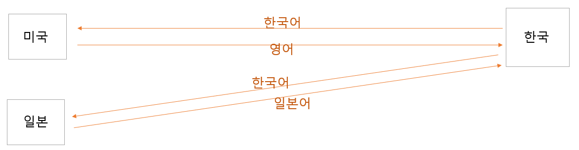 서로 언어가 다르기 때문에 메세지를 주고 받을 때, 서로의 언어를 공부해야 한다는 부담이 있다. 그렇기 때문에, 하나의 공통 언어를 지정하고 그 언어로 소통을 하게 된다면 여러 나라의 언어를 공부해야 한다는 부담 없이 굉장히 효욜적이지 않을까?